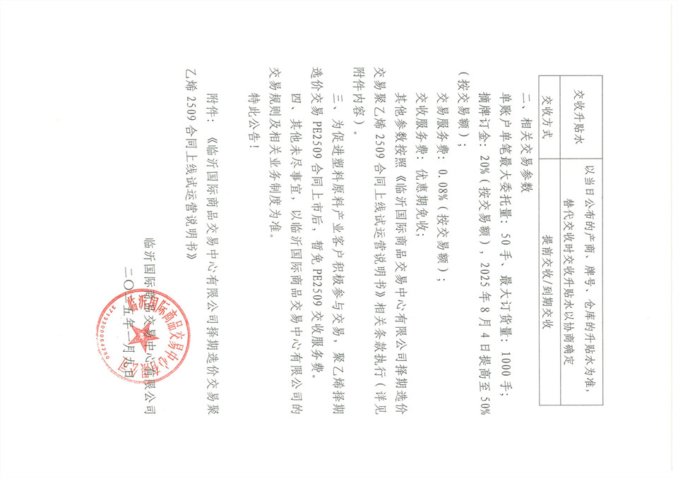 ● 关于择期选价交易聚乙烯2509提高交易保证金的公告